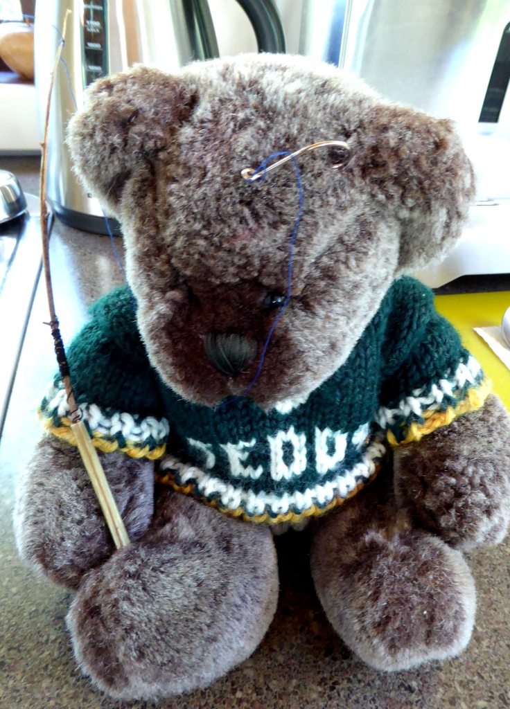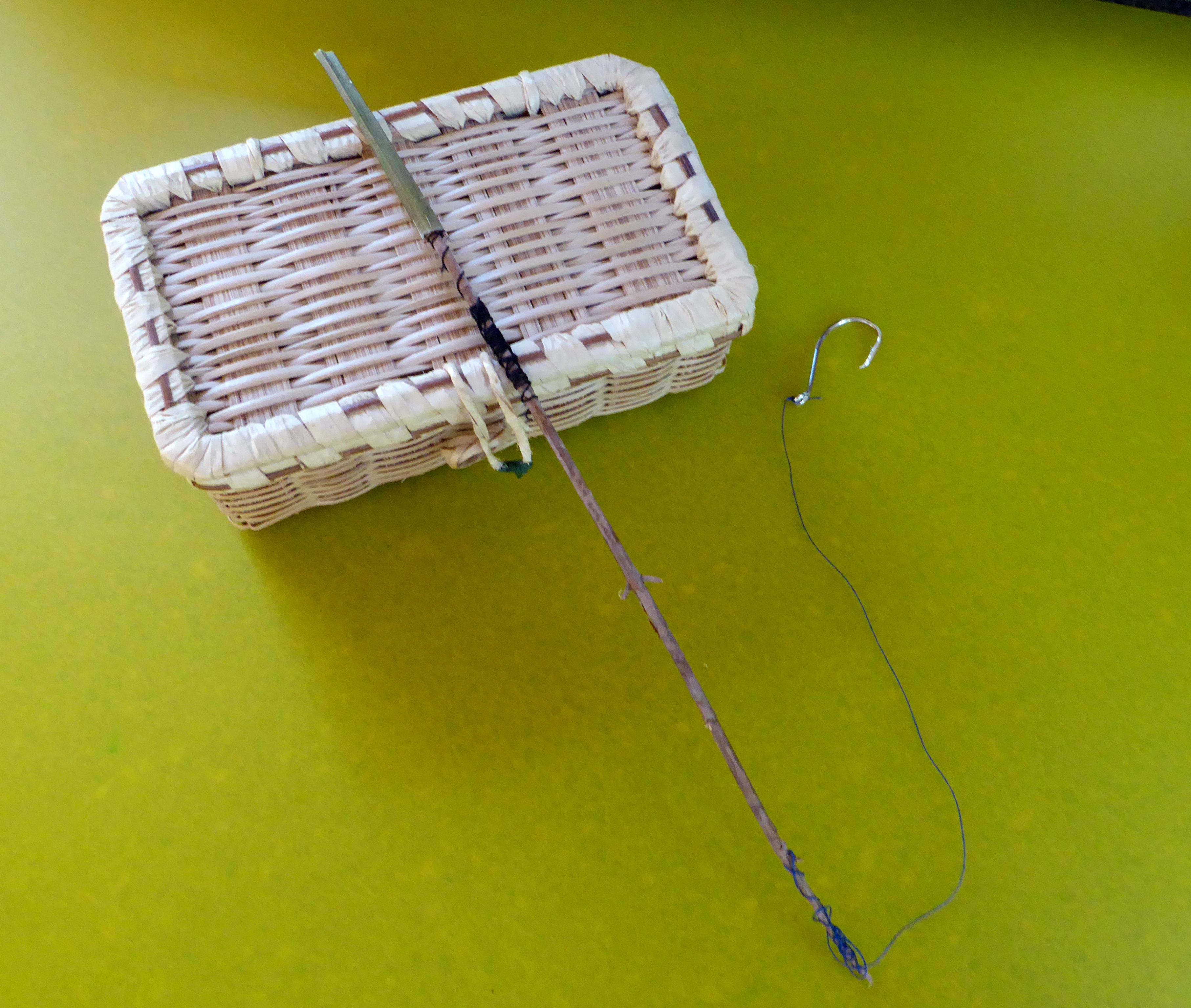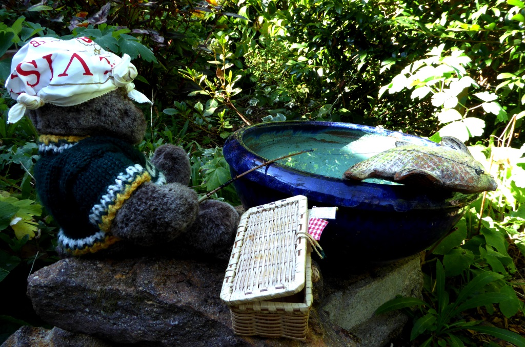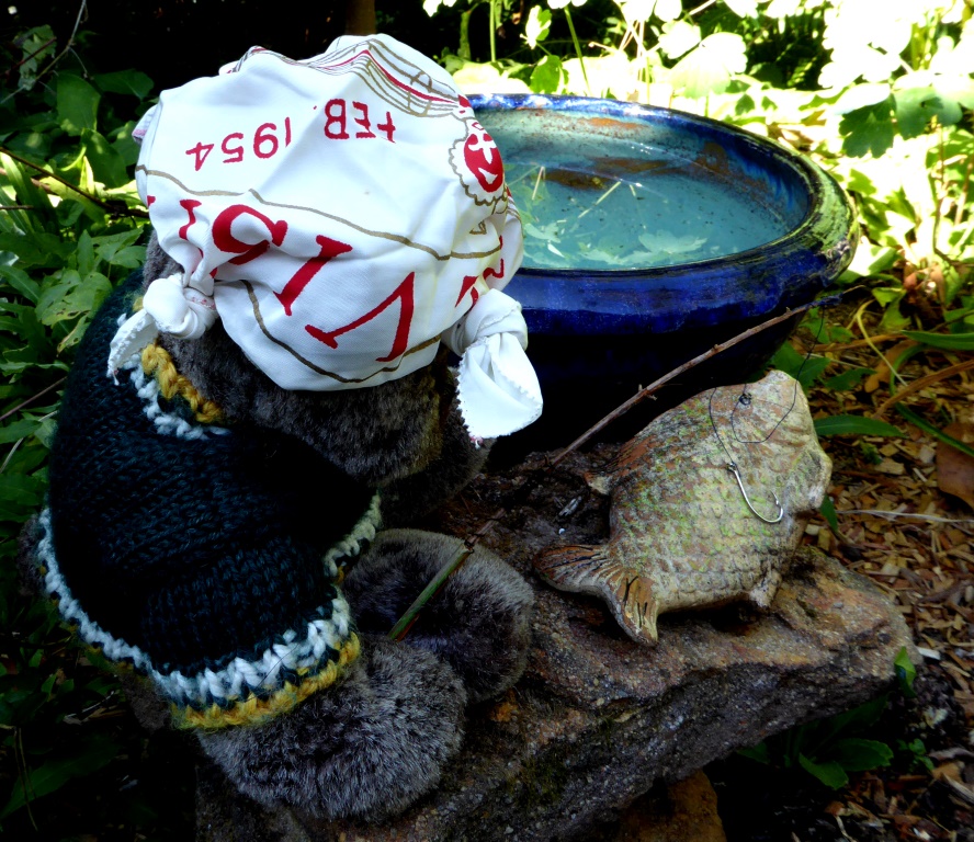 Well I was riding around the garden one day when I thought I spotted a fish in a big water bowl. I asked my guardian (Pauline Conolly) if I could have a fishing rod. Now she is not a very obliging person generally speaking, but to my surprise she made me one. Mind you, I don’t think she really believed me about the fish.