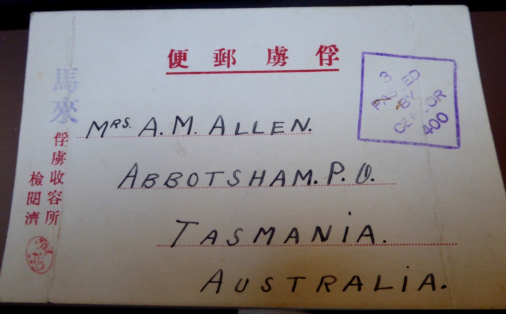 The only other document I have relating to my Uncle Laurie is an undated, heavily censored postcard sent to his mother from a Japanese prisoner of war camp in Malaya;