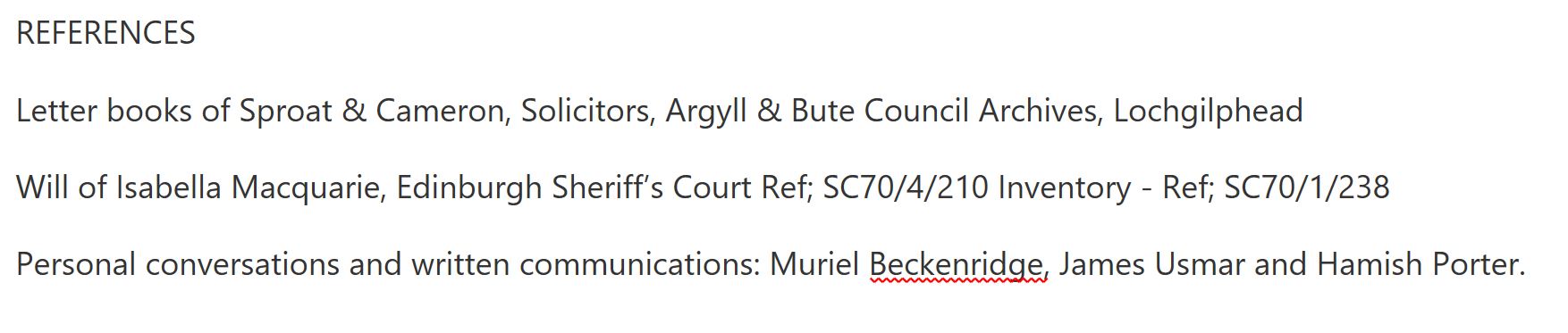 The will also showed that Isabella Macquarie did not make any bequests to Robert Porter. In fact, the Sproat archives revealed that their relationship became acrimonious due to unpaid rents and disputes over livestock. My conclusion is that Porter, upset that he and his large family had to leave what had been a good living, ‘appropriated’ a box of Isabella’s possessions during his unsupervised removal of goods. These then, are surely the relics later offered to the Mitchell by Robert’s daughter Agnes in 1914.