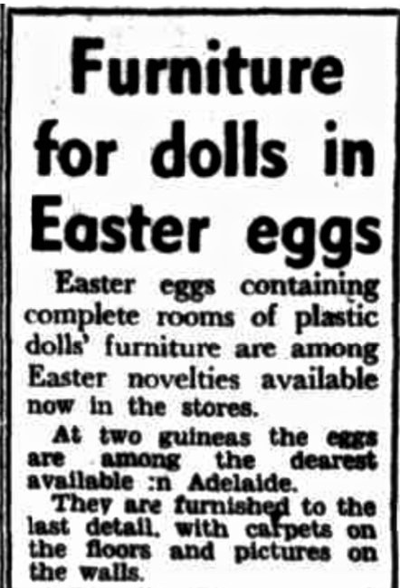 This advertisement really caught my eye. Doll’s house furniture in a chocolate egg……Oh my word, this would have been my heart’s desire. 💛