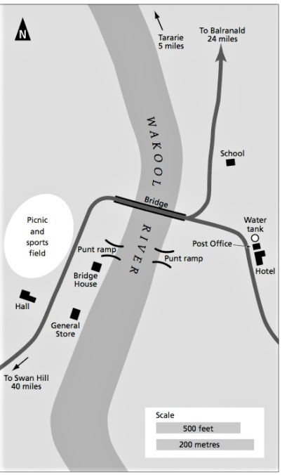 It was the custom for girls to change into their party dresses at the hotel then walk across the Wakool River bridge to the hall. They would collect their day clothes at the end of evening. The Hood boys had left their sulky behind the hotel.